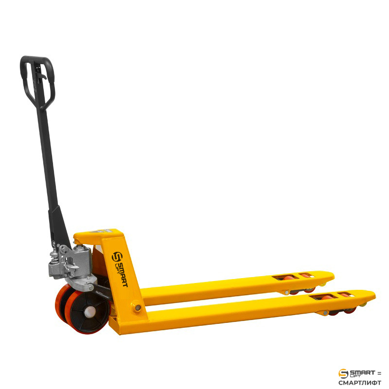 Гидравлическая тележка СМАРТЛИФТ (SMARTLIFT) SD (AC25) 2500 PDP оснащена литым разборным гидроузлом, регулируемыми подвилочными тягами, обрезиненной рукоятью с усиленным основанием. Комплектуется дополнительными рёбрами жесткости в конструкции вил. Такая тележка отлично подойдёт для эксплуатации на складских площадках с повышенным грузопотоком.