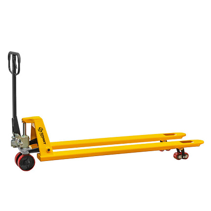 Гидравлическая тележка СМАРТЛИФТ (SMARTLIFT) SD-L (AC25) с увеличенной длиной вил 1800 мм незаменима на складах и производствах, где есть необходимость в перевозке длинномерных или негабаритных грузов.