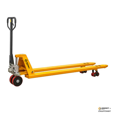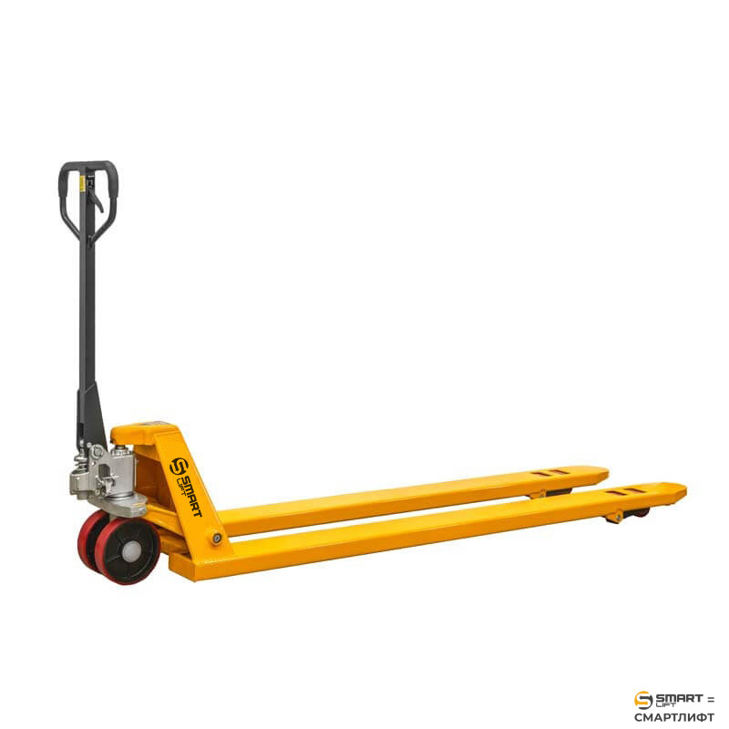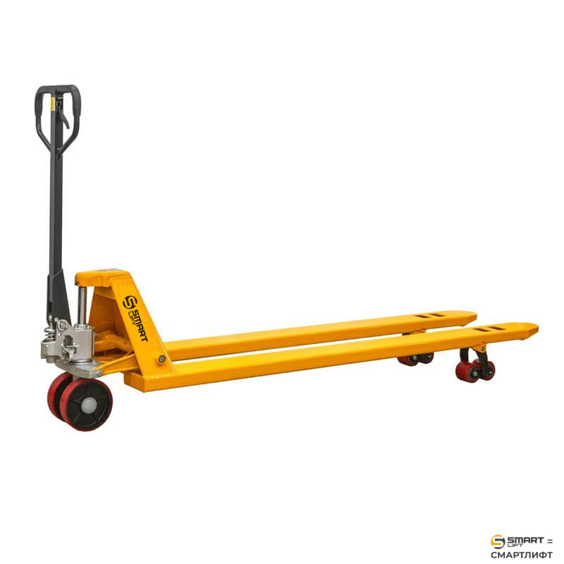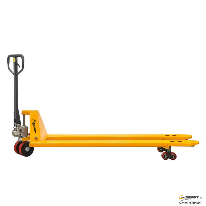 Гидравлическая тележка СМАРТЛИФТ (SMARTLIFT) SD-L (BF25) с увеличенной длиной вил 2000 мм незаменима на складах и производствах, где есть необходимость в перевозке длинномерных или негабаритных грузов.