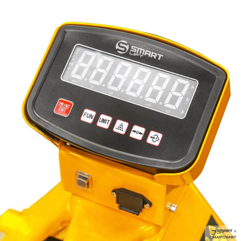 Гидравлическая тележка СМАРТЛИФТ (SMARTLIFT) BFC20 предназначена для перемещения паллетированных грузов и их взвешивания при приёмке на склад, фасовке или отгрузке потребителю. Для этого в модели предусмотрен весовой терминал с дисплеем и яркой подсветкой. В него заложены функции тарирования, изменение шага взвешивания, изменение точности взвешивания.